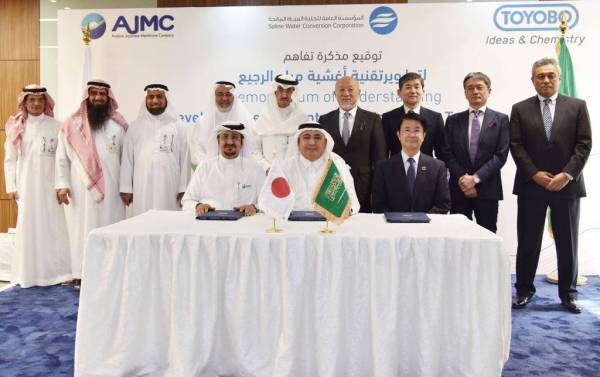 وقعت المؤسسة العامة لتحلية المياه المالحة اليوم (الخميس) بمقرها الرئيسي في الرياض، مذكرة تفاهم مشتركة مع شركة تويوبو اليابانية والشركة العربية اليابانية للأغشية بهدف تطوير نوع جديد من الأغشية ذات التركيز والضغط العالي.