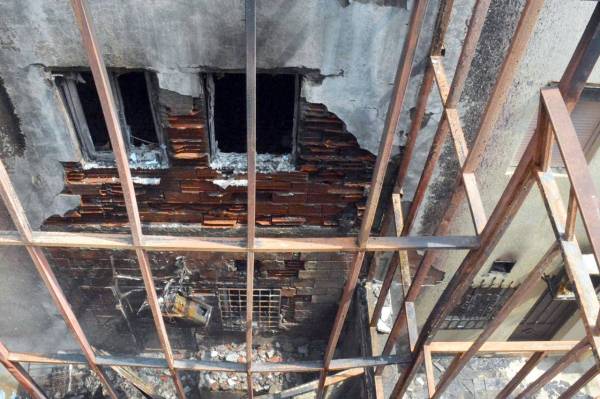 آثار الحريق على إحدى الفلل.