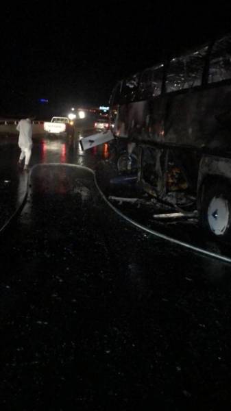 تفحم عدد من الأشخاص، وأصيب 5 آخرون وصفت حالة 3 منهم بالحرجة، في حادثة اصطدام وقعت مساء أمس (الأربعاء) قبل الكيلو 180 بطريق الهجرة، لحافلة كانت تقل نحو 50 راكبا في طريقها من المدينة المنورة إلى مكة المكرمة قادمة من الرياض.