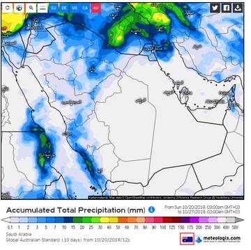 وأكد أخصائي أرصاد أول خبير الأرصاد الجوية حسن كراني أن التغير المناخي الذي تشهده أجواء المملكة، يمتد في الفترة من 25-31 أكتوبر، ناتج عن اضطراب مداري على بحر العرب بصحبة تكون وتحرك إعصار يدفع بخار الماء لشبه الجزيرة يصحبه حمل حراري عنيف يؤدي لسحاب ركامي ممطر على المناطق الجنوبية الغربية يمتد للغربية وأجزاء من شمال المملكة ووسطها، مشيرا إلى أن قوة تلك الحالة ستكون 31 أكتوبر وبداية نوفمبر.