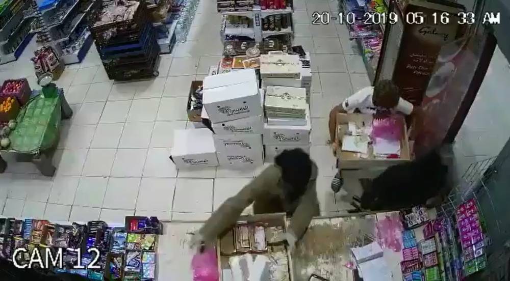 #فيديو | مسلحون يقتحمون محل تموينات في الخريطة بـ #تبوك.. ومصادر #عكاظ تؤكد مباشرة الجهات الأمنية للحالة، وجار البحث عن الجناة.#عاجل
