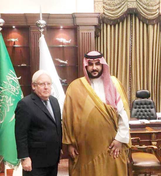 الأمير خالد بن سلمان خلال لقائه غريفيث.