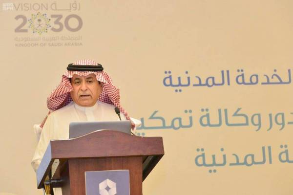 وقال: «إن الأنظمة واللوائح في الخدمة المدنية لا تفرق بين الجنسين في الحقوق والواجبات، وقد جاءت اللائحة التنفيذية للموارد البشرية بمبادئ ومفاهيم تدعم تمكين المرأة، منها على سبيل المثال لا الحصر بناء ثقافة عمل مؤسسية إيجابية تضمن حقوق منسوبيها، وتدعم تطويرهم وتدريبهم».