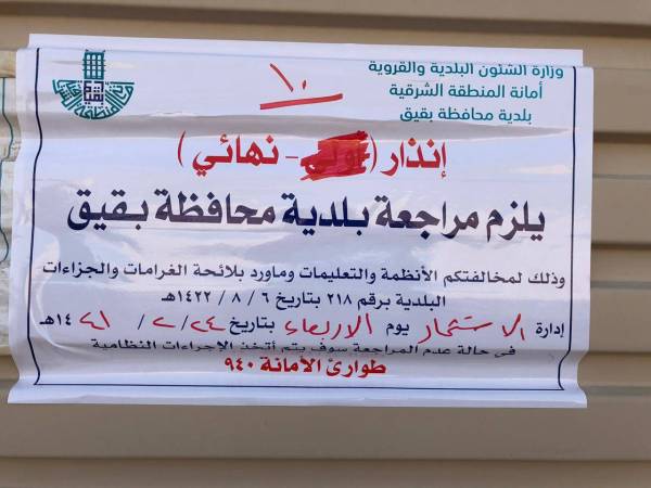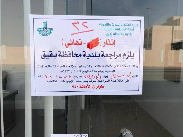 بقيق: إنذار 80 مستثمراً
