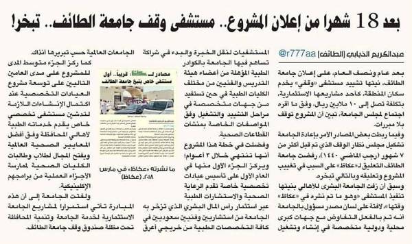5 مشاريع وقفية في جامعة الطائف.. قريبا