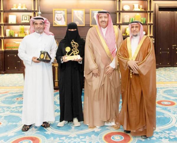 الأمير حسام بن سعود مكرماً الطالبة أميرة الغامدي.