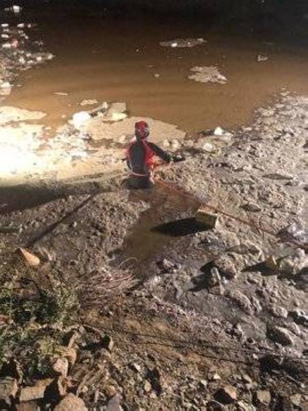 ونشر الدفاع المدني عبر حسابه بموقع التواصل الاجتماعي «تويتر»، صوراً تظهر عملية انتشال الجثة، سائلاً الله أن يجعله شفيعاً لوالديه.