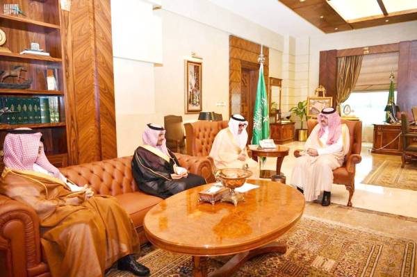 الأمير مشعل بن ماجد أثناء استقباله رئيس مجلس إدارة غرفة جدة.