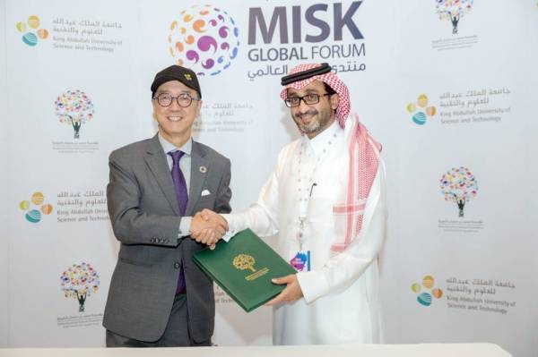 وقعت جامعة الملك عبد الله للعلوم والتقنية (كاوست) (الخميس)، مذكرة تفاهم مع مركز مبادرات مسك التابع لمؤسسة مسك الخيرية، لتوسيع فرص التعاون بين المؤسستين وتوحيد الجهود لتحقيق أهداف التنمية الوطنية في مختلف المجالات، خصوصاً مجال إعداد قادة المستقبل من الشباب. وجرت مراسم التوقيع على هامش فعاليات منتدى مسك العالمي في الرياض، ووقع الاتفاقية البروفيسور توني تشان مدير الجامعة، وبدر العساكر مدير المكتب الخاص لولي العهد ورئيس مركز مبادرات مسك الخيرية.