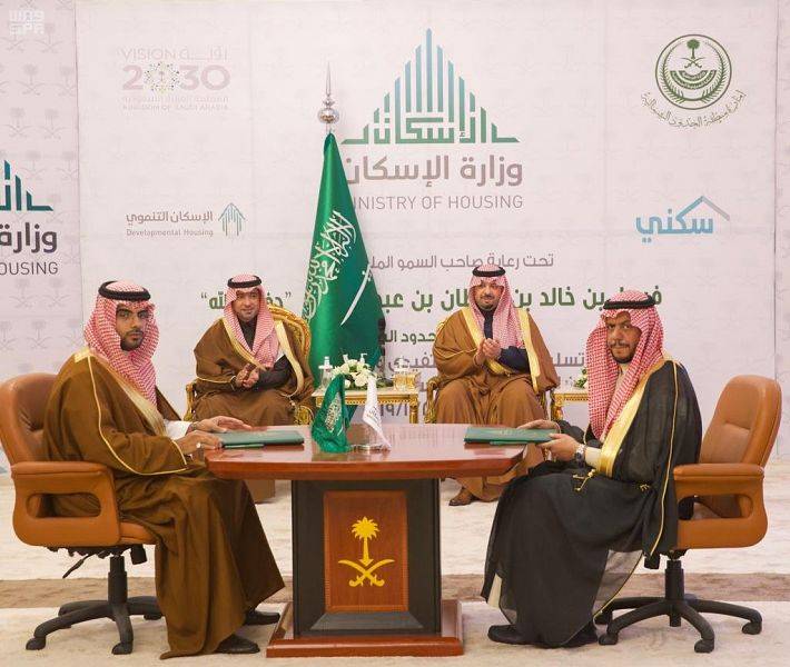 وقّعت وزارة الإسكان ممثلة بوكالة الأراضي والشؤون الفنية عقدًا مع شركة عبدالعالي العجمي للمقاولات وآخر مع شركة سعد سعيد الصاعدي للمقاولات، لتنفيذ أعمال البنية التحتية في مخططي «دومة الجندل» و«القريات» بمنطقة الجوف على مساحة إجمالية تتجاوز 2.3 مليون متر مربع، لتوفير 2269 قطعة أرض سكنية بمتوسط 400 متر مربع للأرض الواحدة، بحضور أمير منطقة الجوف الأمير فيصل بن نواف بن عبدالعزيز، ووزير الإسكان ماجد بن عبد الله الحقيل، في مقر الإمارة اليوم.