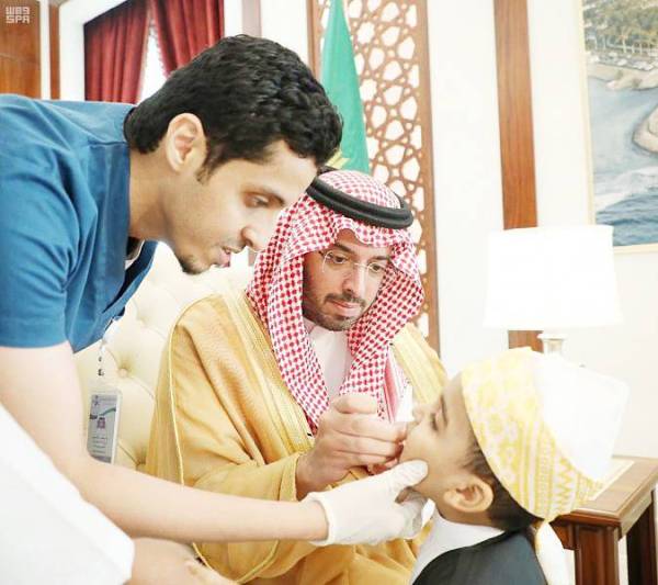 الأمير سعود بن جلوي يعطي طفلا الجرعة.