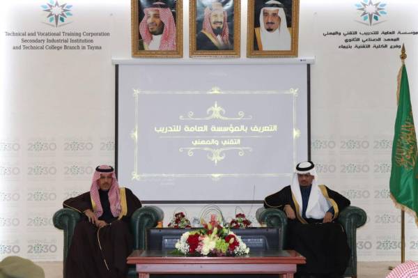 دشن محافظ تيماء سعد بن نايف السديري، بحضور مدير عام الإدارة العامة للتدريب التقني والمهني بتبوك فهد المطيري، صباح اليوم (الثلاثاء)، مبادرة «تقني وأفتخر» التي ينفذها المعهد الصناعي الثانوي بتيماء، بالتعاون مع مكتب التعليم بالمحافظة.