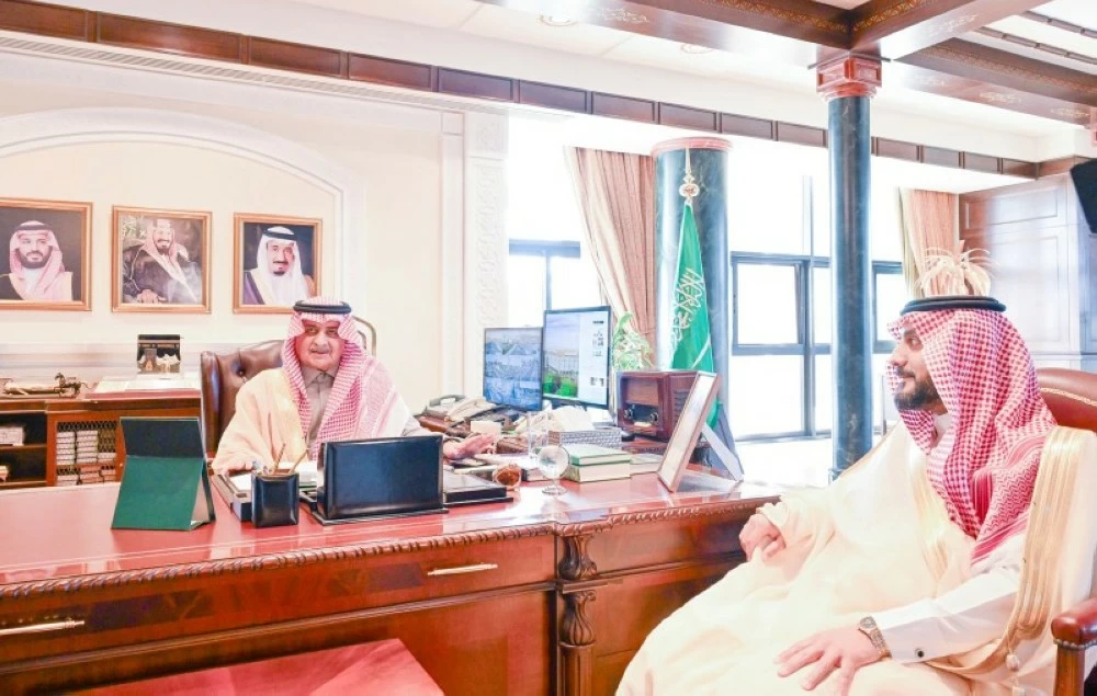 This came during his reception of the Director of the branch of the Ministry of Islamic Affairs, Call, and Guidance in the region, Abdullah Mohammed Al-Mushaikih, where he was briefed at the beginning of the meeting on the achievements and active participation of the branch, as well as the volunteer work, and everything related to the service of the houses of God, including construction, renovation, and maintenance works. He praised the efforts of the ministry branch and the noble work it is doing, noting that this is part of the comprehensive care and continuous attention from the Custodian of the Two Holy Mosques and the Crown Prince.
