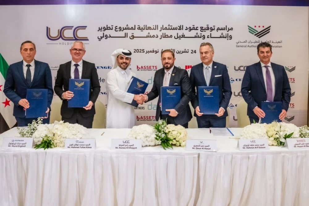 The General Authority of Civil Aviation in the Syrian Arab Republic has signed the final concession contracts for investment in the development, expansion, establishment, and operation of Damascus International Airport with an international consortium led by Orbakon Holding through its subsidiary UCC Concessions for Investment, in partnership with Turkish construction companies Cengiz and Kalyon, and American investment firm Assets. This project represents the largest investment in Syria's history, valued at $4 billion, reflecting international confidence in the future of the Syrian air transport sector.