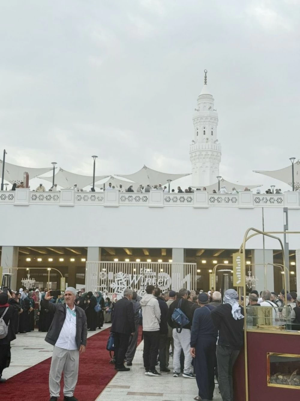 Visitors flocked to the Qiblatain Mosque, which has undergone the development of all its facilities to become an architectural model that combines historical authenticity and Islamic identity with modern construction and service technologies. The total area of the site exceeds 265,000 square meters, while the mosque itself covers more than 3,900 square meters, with a capacity of over 20,000 worshippers, providing more than 300 parking spaces for buses and cars, in addition to the installation of more than 50 canopies equipped with 100 mist fans, contributing to cooling the atmosphere, and a modern design for the corridors and squares that enhances the flow of movement and creates a comfortable environment for worshippers and visitors.