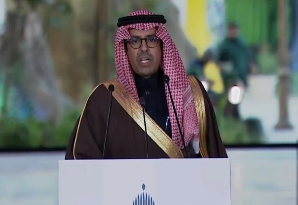 وزير الإعلام سلمان الدوسري، خلال المؤتمر الصحفي الحكومي الذي عُقد اليوم من مشروع «القدية».