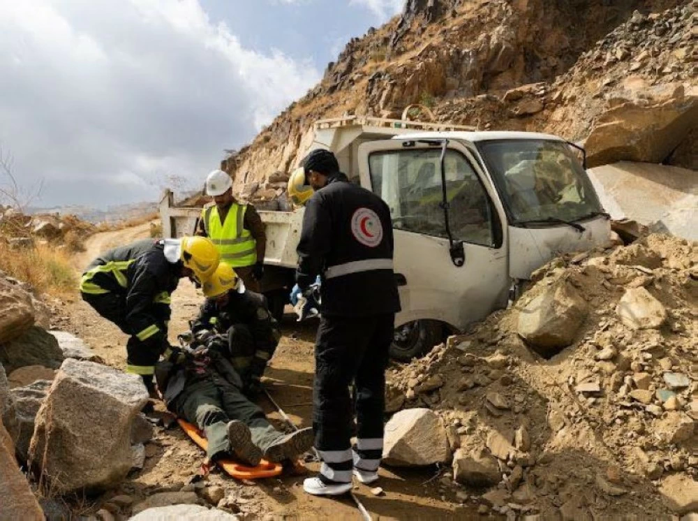 أمانة عسير تنفّذ فرضية «انهيار صخري» بشراكة وتعاون إدارات عدة