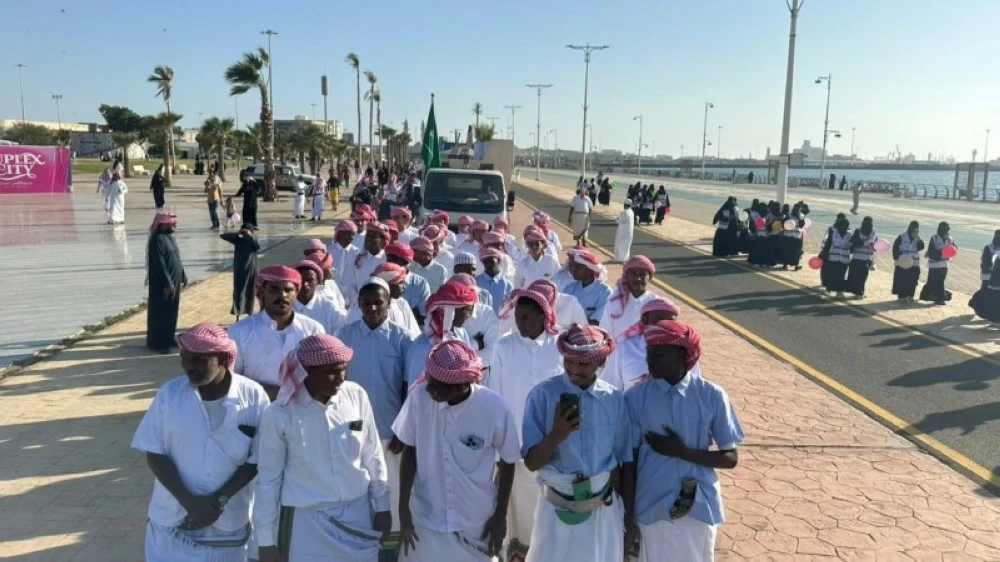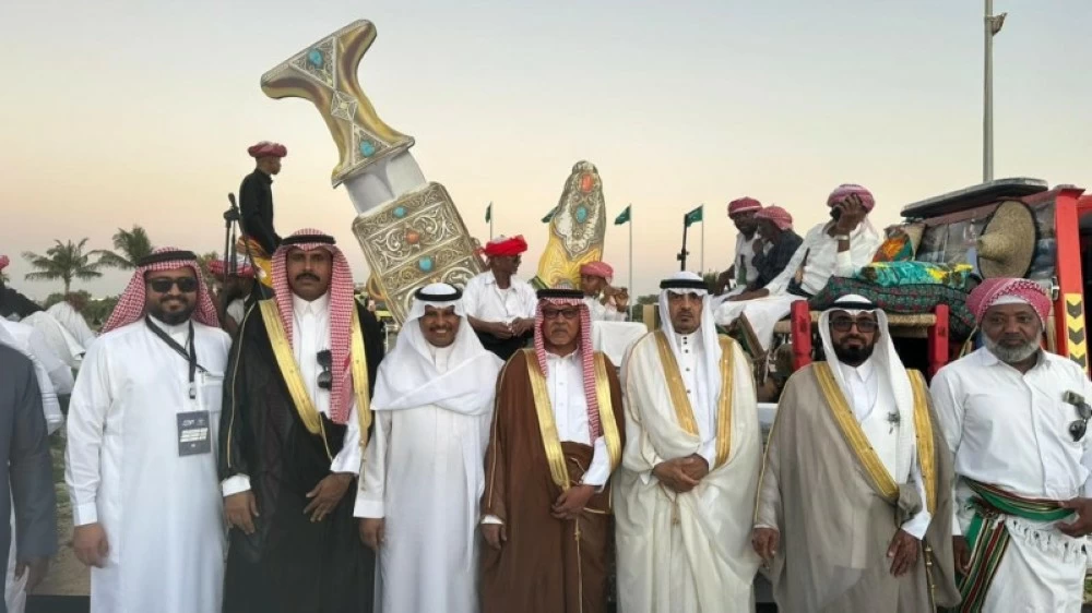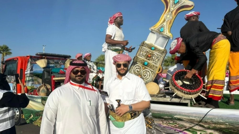 The participation of Al-Harath Governorate in the Jazan Festival was highlighted through the carnival parade, which featured a model of the governorate's identity (the Southern Khanjar) in its attractive colors, carried on a cart equipped with images that reflect the nature of the place and its people. The participation was accompanied by folk art groups performing the Zamil, Al-Masha, and Al-Mizmar.