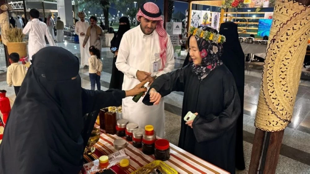 The pavilion of the Province of Sabya participating in the event "This is Jazan," as part of the Jazan Festival 2026, witnessed a remarkable turnout from festival visitors both from within the Kingdom and abroad. A Japanese tourist expressed her great admiration for the pavilion's rich historical heritage and authentic folk traditions that reflect the identity of this ancient province.