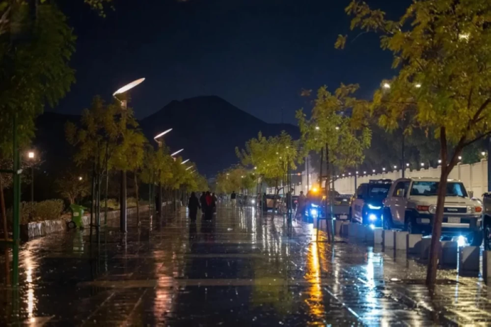 This morning, light to moderate rain fell in the Eastern Province, including the city of Dammam and its suburbs, as well as the governorates of Khobar, Qatif, and Ras Tanura. The sky remains overcast and ready for more rainfall.
