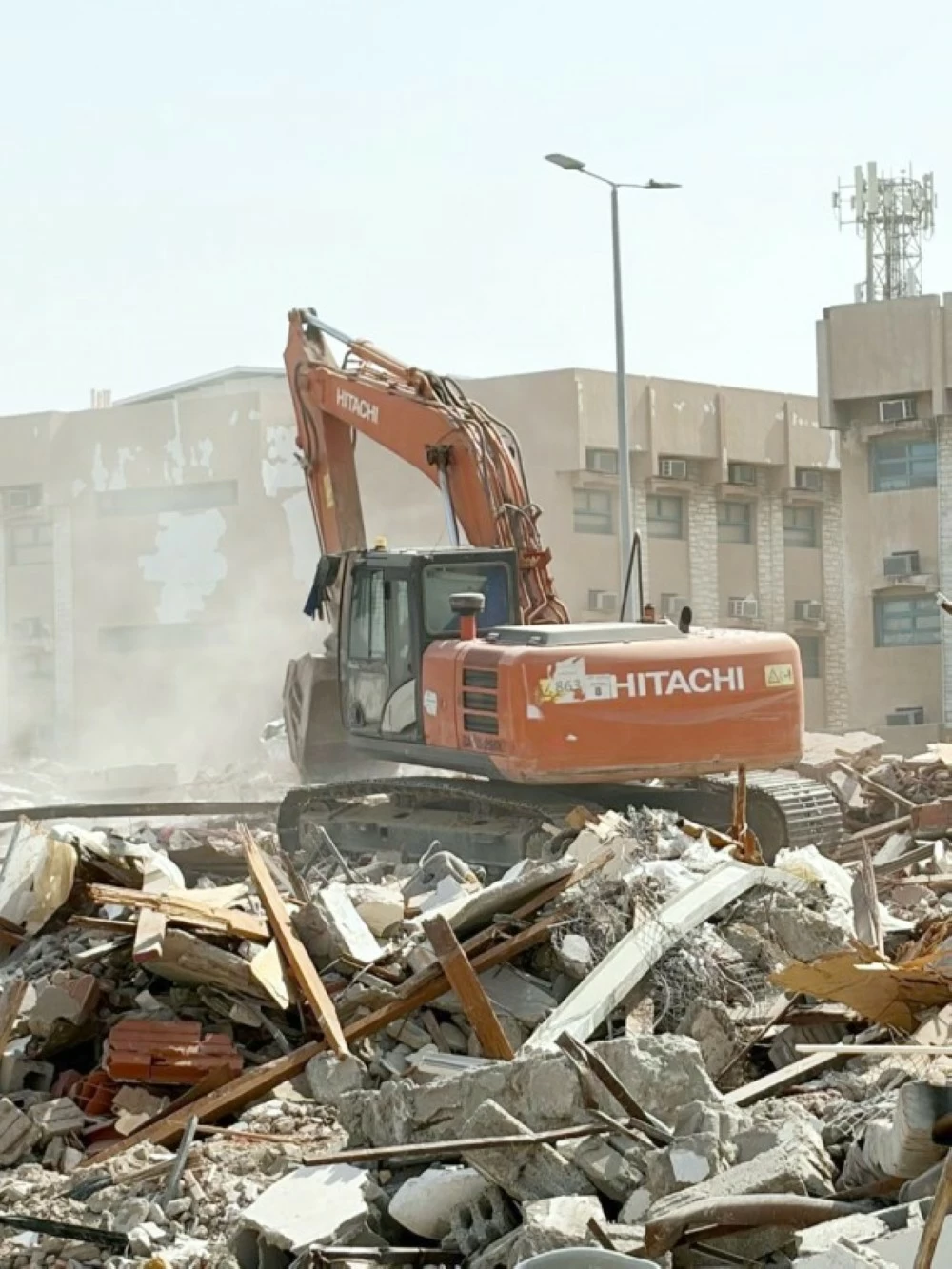 The Jeddah Municipality has begun the removal of buildings at risk of collapse in the Al-Ruwais neighborhood, as part of its ongoing efforts to enhance public safety and protect lives and property, as well as to address dilapidated buildings that pose a danger to residents and the urban landscape.