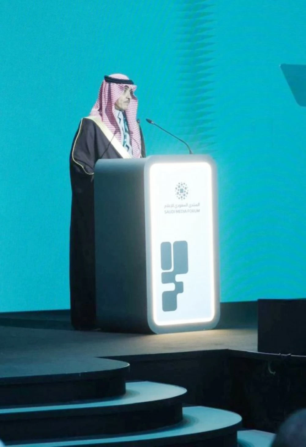 جاء ذلك في كلمته خلال افتتاح النسخة الخامسة من المنتدى السعودي للإعلام 2026م، المقام في الرياض برعاية خادم الحرمين الشريفين تحت شعار «الإعلام في عالم يتشكل»، بمشاركة أكثر من 300 قائد وخبير إعلامي من أكثر من 20 دولة عبر ما يزيد على 150 جلسة حوارية متخصصة، إلى جانب معرض مستقبل الإعلام (فومكس) بمشاركة أكثر من 250 شركة محلية وعالمية.