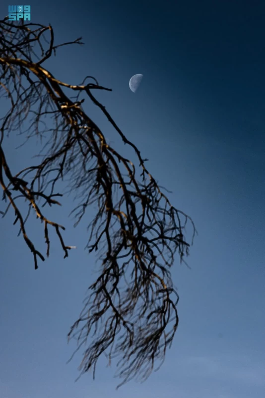 The sky of Arar city in the Northern Borders region was adorned today by the observation of the last quarter of the moon of Sha'ban 1447 AH, in a calm astronomical scene where the moon displayed half of its illumination, announcing its approach to the conjunction phase and the beginning of a new lunar cycle.