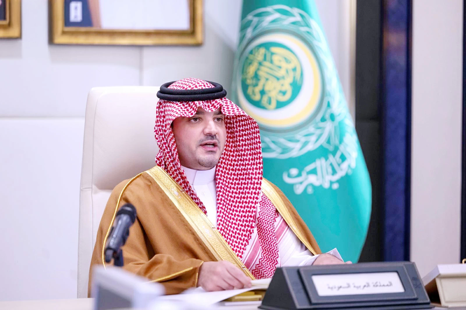 The delegation from the Kingdom was headed by the Minister of Interior, the honorary president of the Council of Arab Interior Ministers, Prince Abdulaziz bin Saud bin Nayef, who delivered a speech during the meeting, conveying the greetings of the Custodian of the Two Holy Mosques and the Crown Prince, expressing their hope that the meeting would contribute to enhancing efforts for joint Arab cooperation. The Minister of Interior also welcomed the ministers who have recently joined the Council of Arab Interior Ministers.