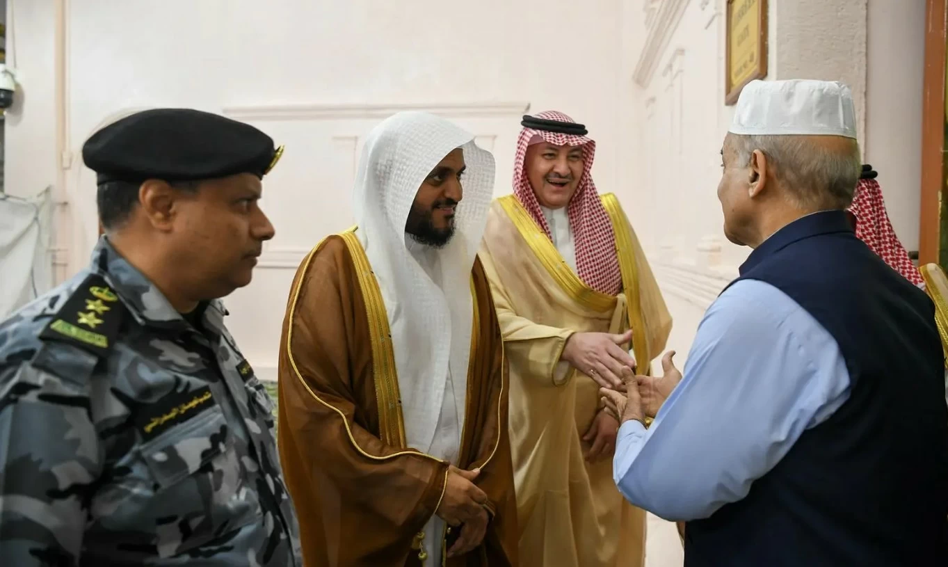 He was received upon his arrival at the Prophet's Mosque by the Commander of the Mosque's Security Force, Colonel Muteb bin Nuaiman Al-Badrani, the Director of the Royal Protocol Office in the region, Ibrahim bin Abdullah Barri, and a number of officials.