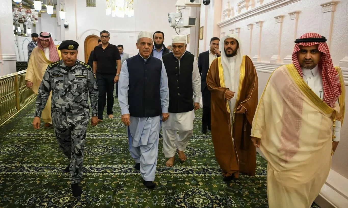 The Prime Minister of the Islamic Republic of Pakistan, Muhammad Shahbaz Sharif, and his accompanying delegation visited the Prophet's Mosque today (Thursday), where he performed prayers and had the honor of greeting the Messenger, may peace be upon him, and his two companions, may Allah be pleased with them.