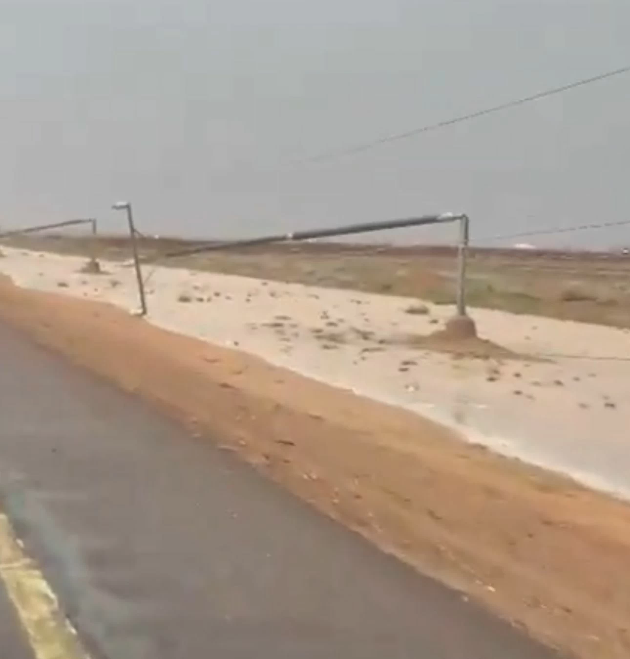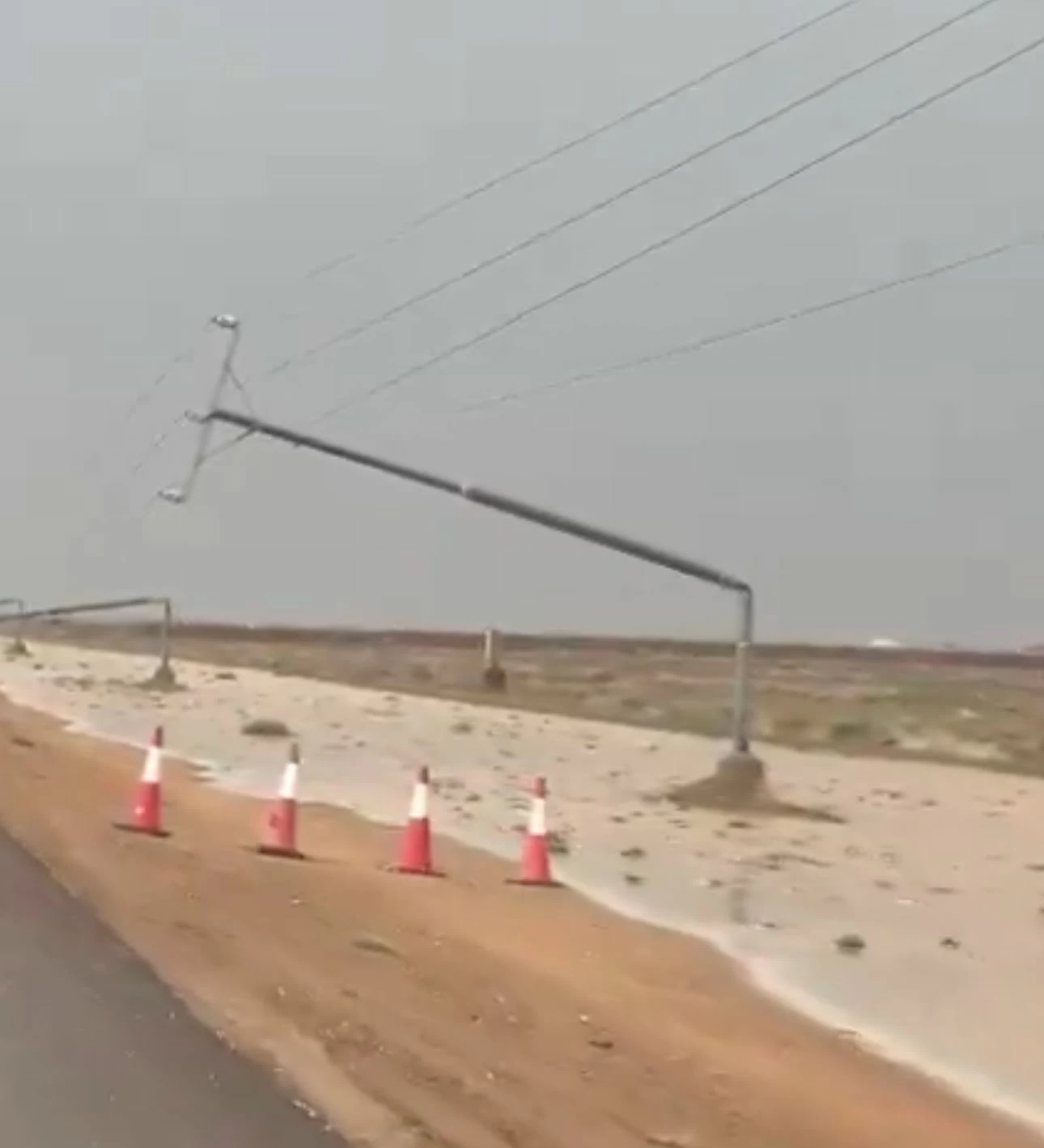 Following the circulation of footage showing the collapse of electrical poles in the Riyadh Al-Khubar region, the Saudi Electricity Company issued a clarifying statement revealing the circumstances of the incident, confirming that strong winds struck the site and affected several poles, without resulting in any injuries.