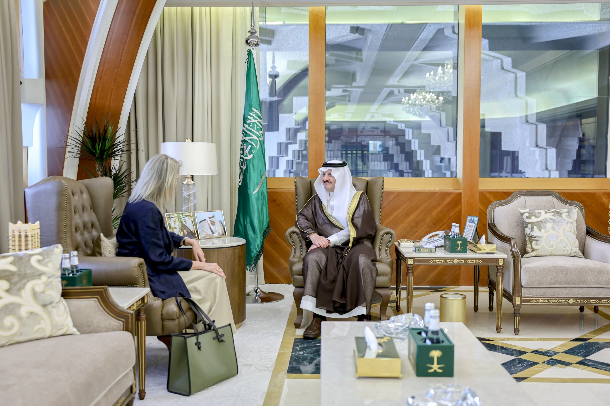 ورحب أمير المنطقة الشرقية بالسفيرة في المنطقة الشرقية، وجرى خلال اللقاء تبادل الأحاديث الودية ومناقشة عدد من الموضوعات ذات الاهتمام المشترك.