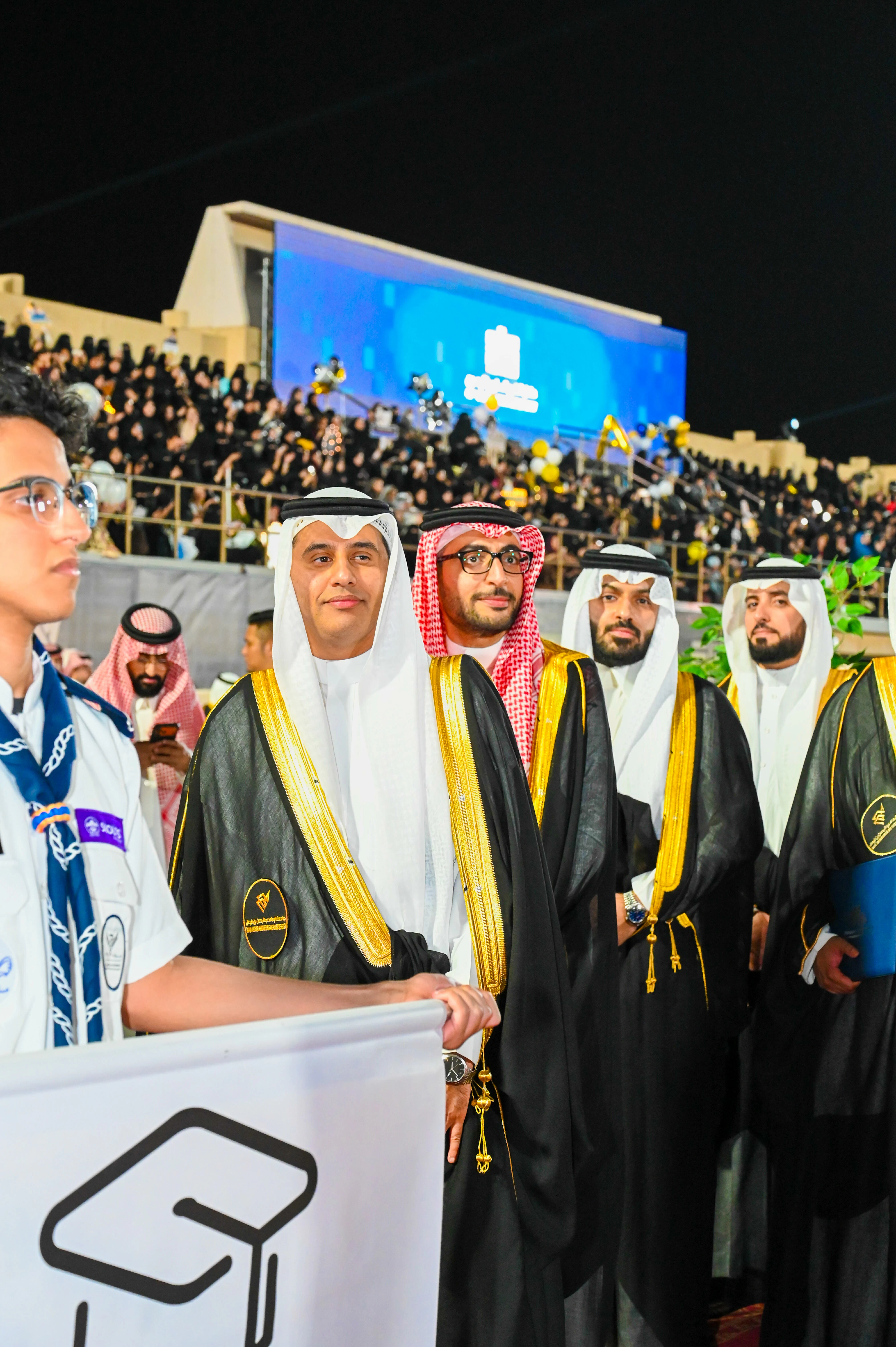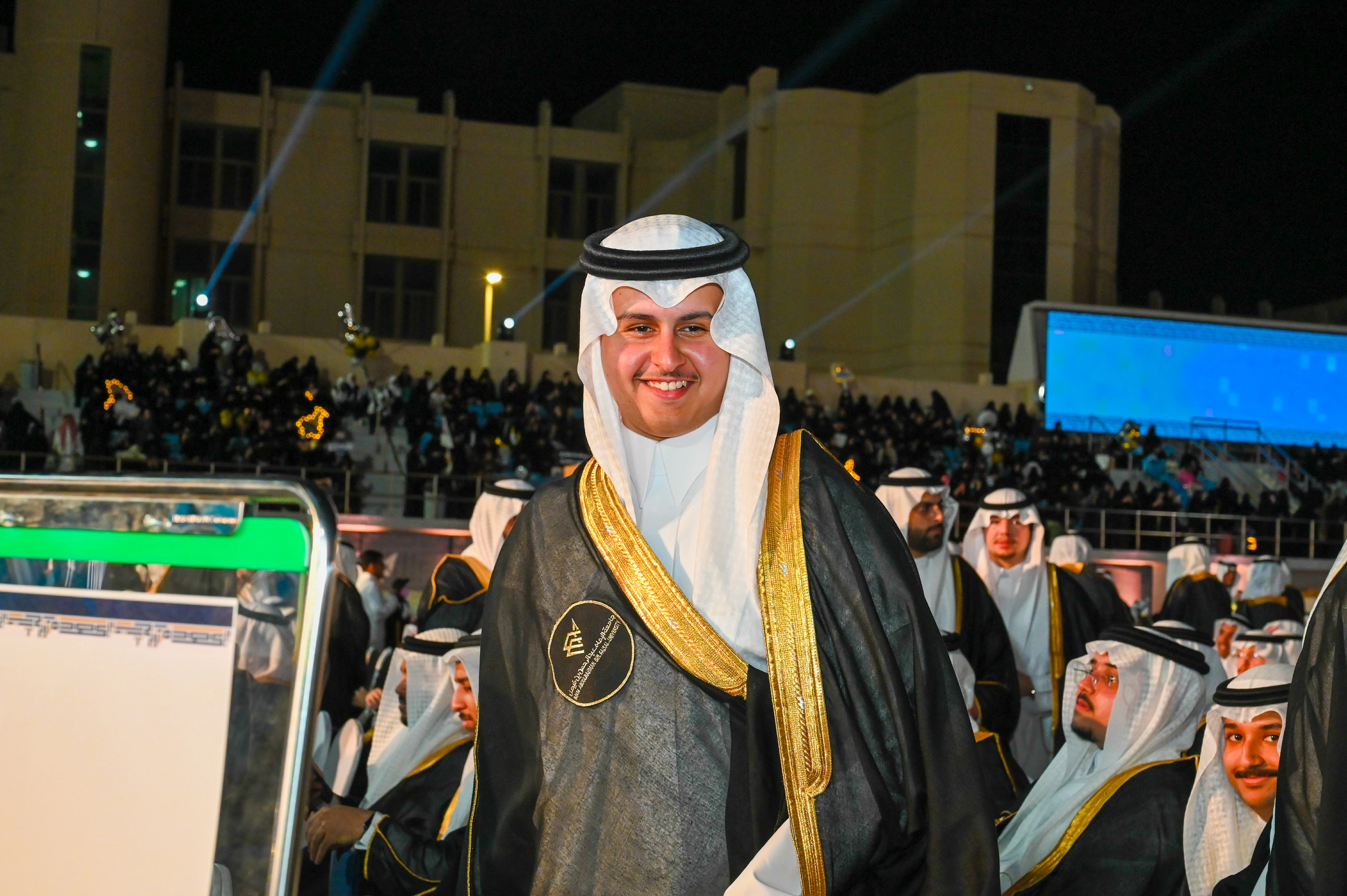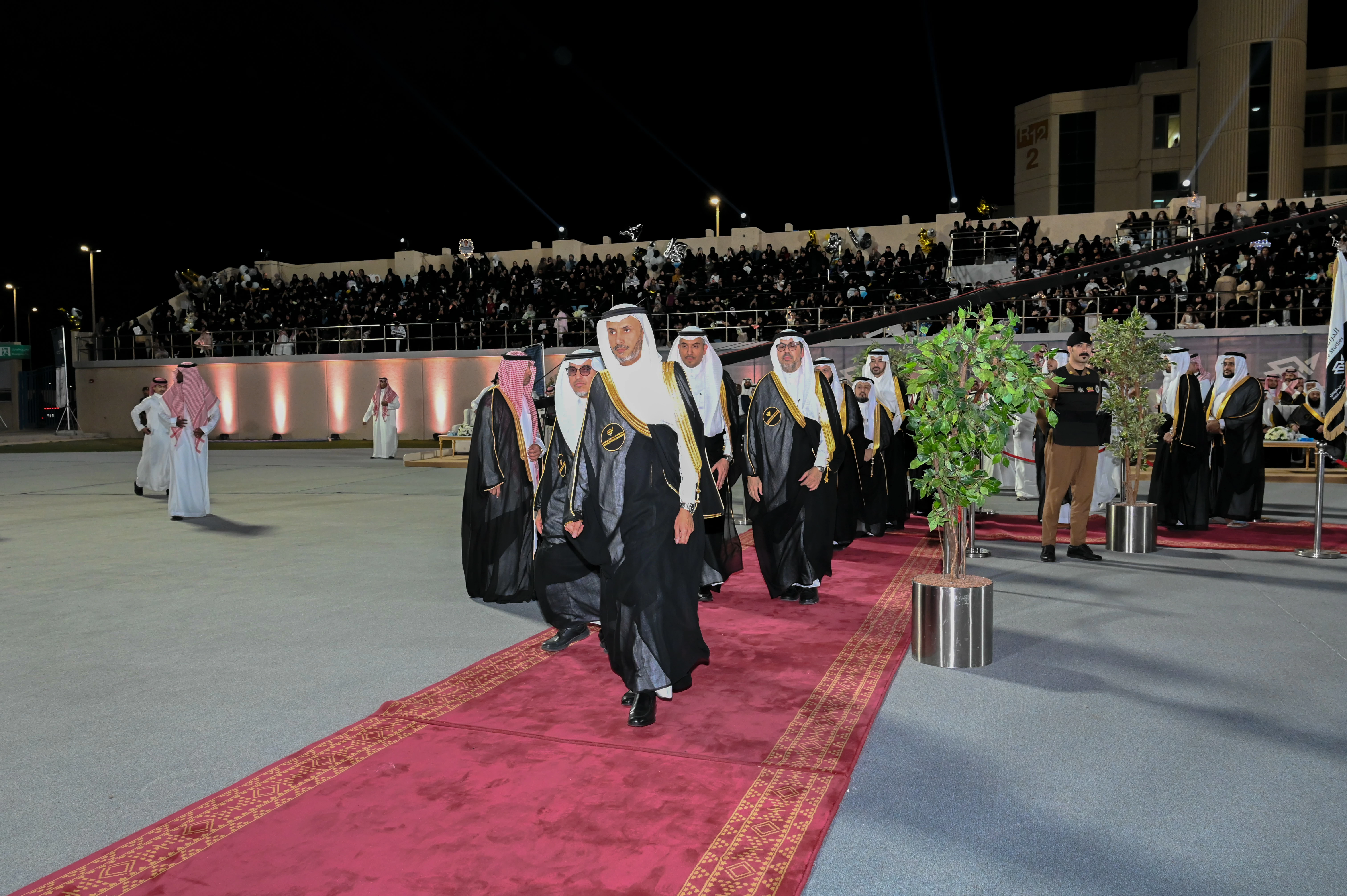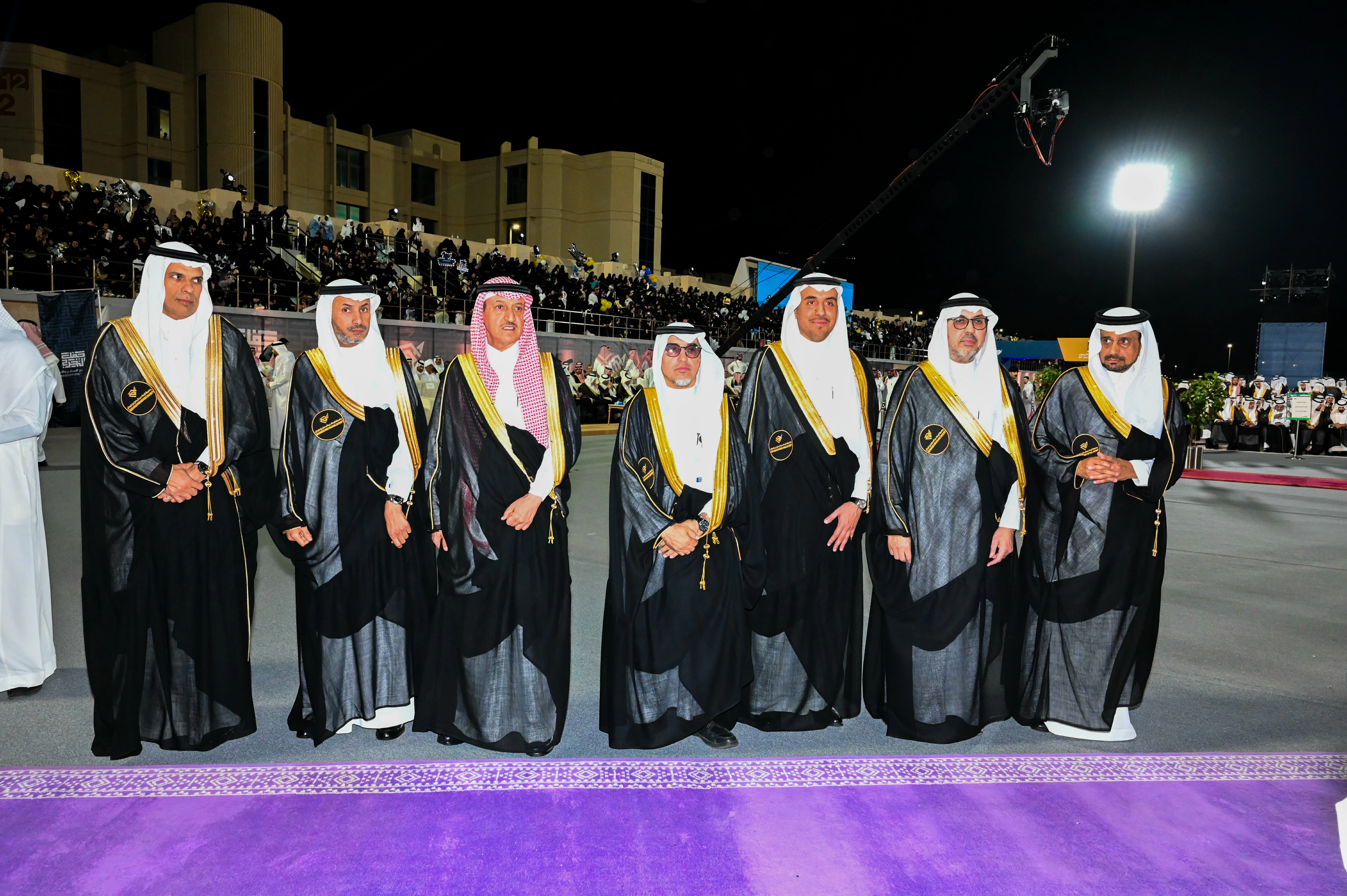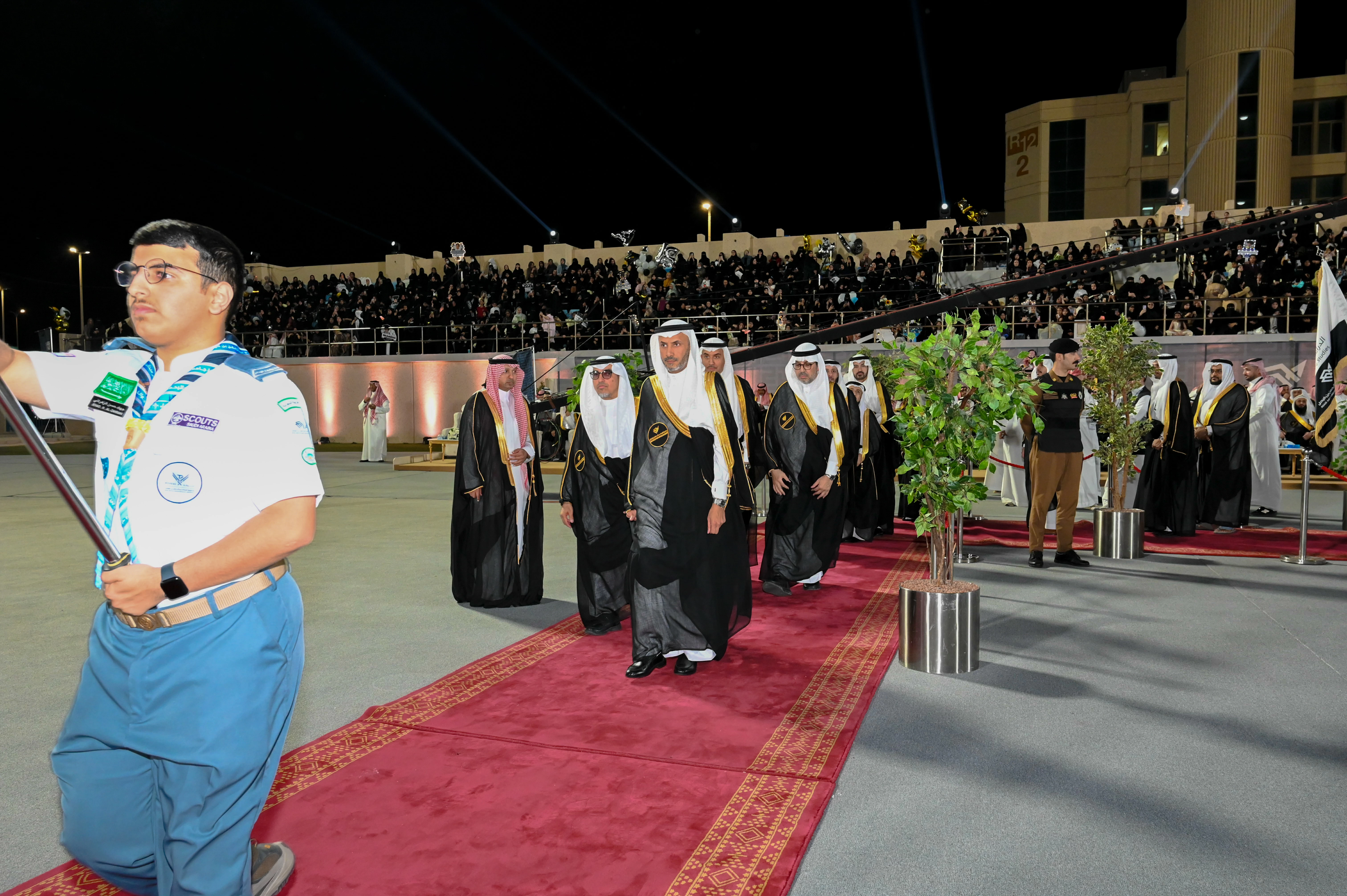 He continued: "My dear graduates, you are the fruit of today and the hope of tomorrow, and the extension of the journey. This university welcomed you one day when you carried passion and ambition. To our colleagues from the faculty members, we stand in this position in reverence for your contributions and appreciation for your efforts, which cannot be measured in hours but in the knowledge you have instilled, the minds you have built, and the aspirations you have inspired. You are the difference makers, the bearers of the message, and partners in this achievement. To the guardians, you have my utmost gratitude and sincerest appreciation, for you have been the support in a long journey, the patience in times of challenge, and the unceasing prayers. Your steadfastness and care have had the greatest impact in reaching this moment. In conclusion, we renew our thanks and appreciation to the Prince of the Eastern Province, and our gratitude extends—with great appreciation—to the Minister of Education, Yusuf bin Abdullah Al-Bunyan, for the attention and follow-up the university receives. We ask Almighty God to continue granting our homeland security and prosperity and to bless the efforts of its sons and daughters, making this group a renewed resource for the construction journey and a support and aid for the country, and a symbol of a future worthy of a nation that knows no impossibility."