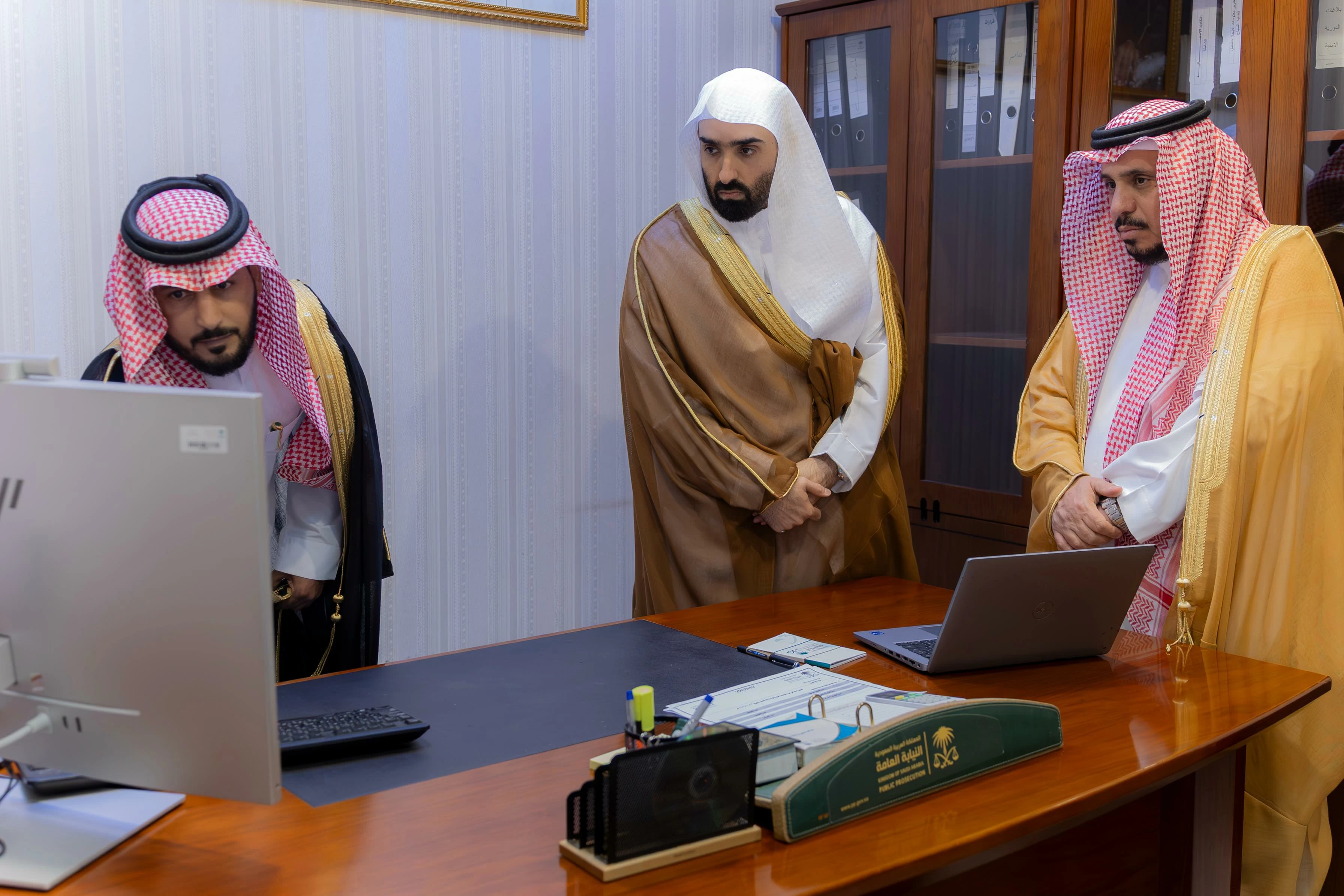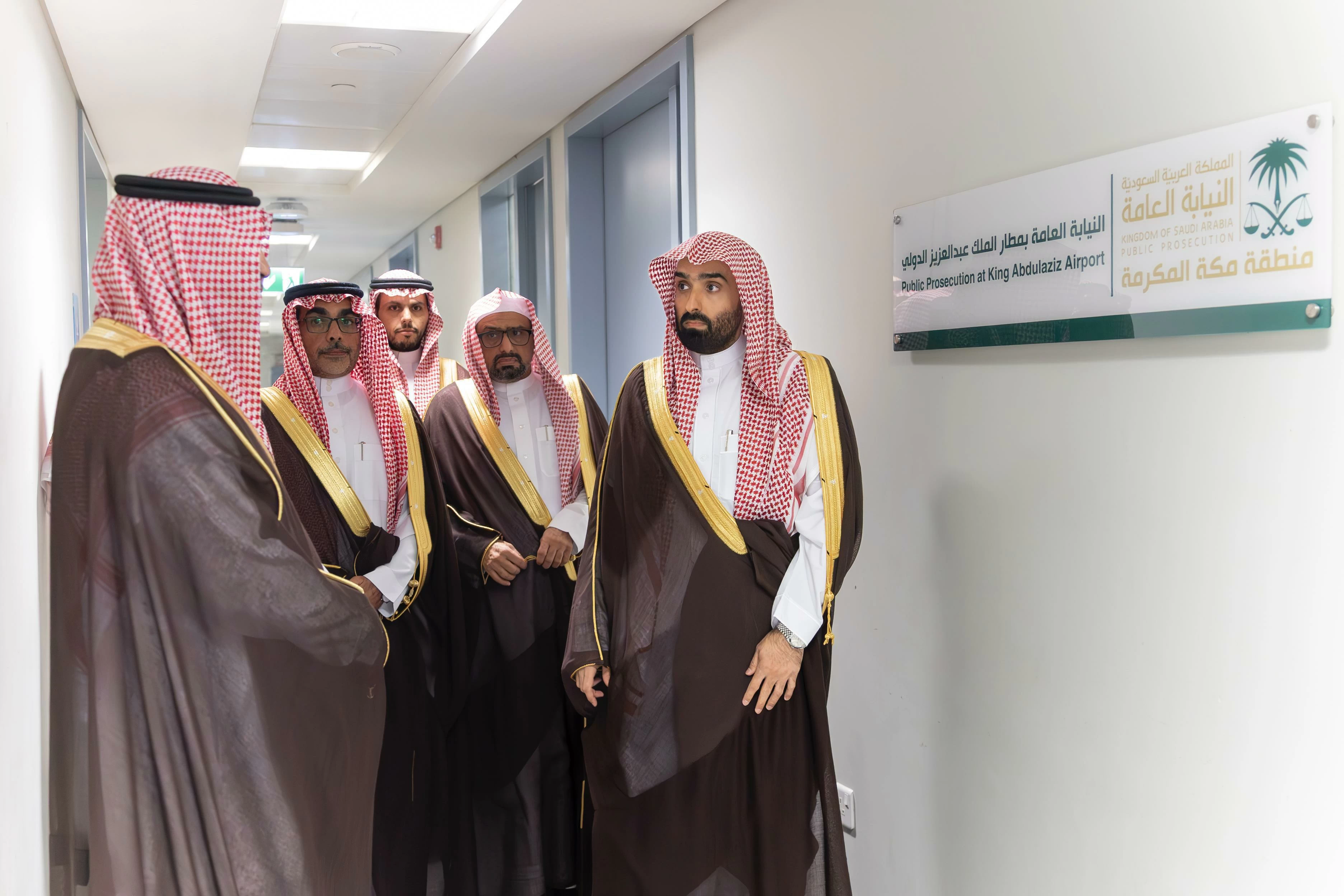 The visit started from the Public Prosecution office at King Abdulaziz International Airport in Jeddah, then to the Public Prosecution locations in the holy sites and the Grand Mosque, and he concluded his tour by visiting the Public Prosecution office in Medina and the Medina Haram Prosecution.