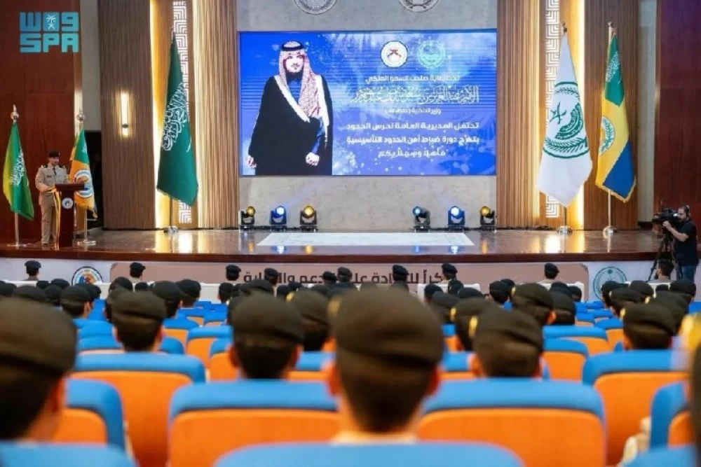Under the patronage of the Minister of Interior, Prince Abdulaziz bin Saud bin Naif bin Abdulaziz, the Director General of the Border Guard, Major General Shaya bin Salem Al-Wadani, witnessed the graduation ceremony of 240 officers from the "Foundational Border Security" course, held at the directorate's headquarters in Riyadh.