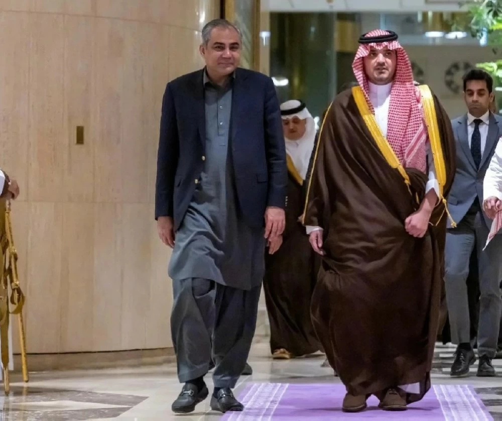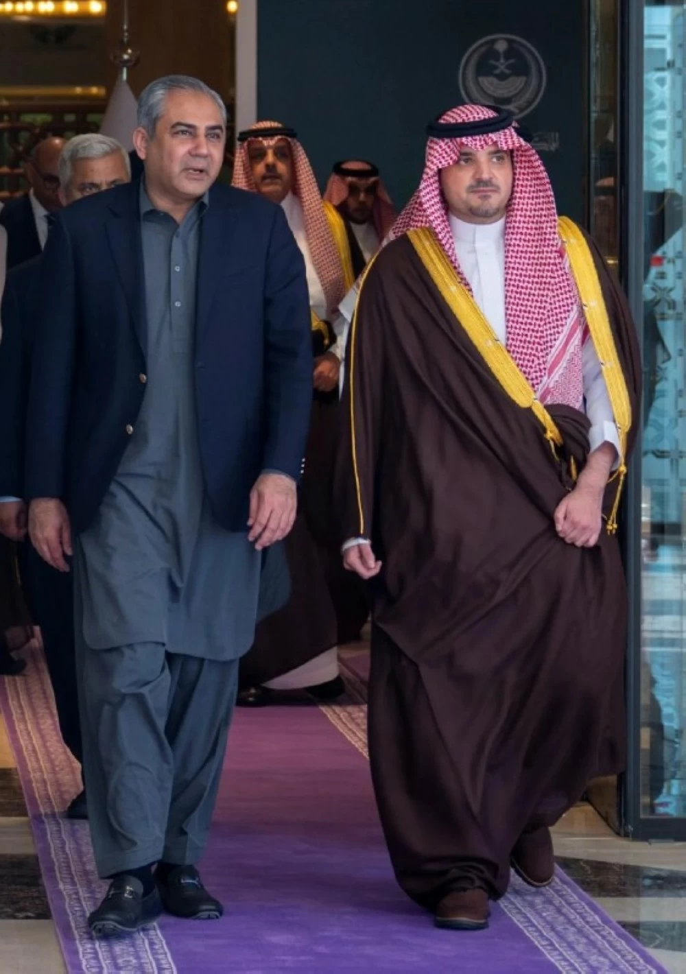 Interior Minister Prince Abdulaziz bin Saud bin Naif bin Abdulaziz received today (Monday) in his office at the ministry the Interior Minister and Anti-Narcotics Minister of the Islamic Republic of Pakistan, Mohsin Raza Naqvi.
