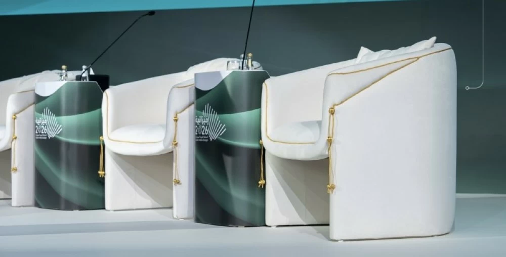 The image of the Minister of Finance seated on one of these chairs reflects the ability of traditional arts to accompany major economic events and provide a level of representation befitting the Kingdom's status in managing its financial and developmental affairs. The integration of traditional art with the economic event indicates an advanced cultural policy that gives Saudi craftsmanship a visible position in the official scene.