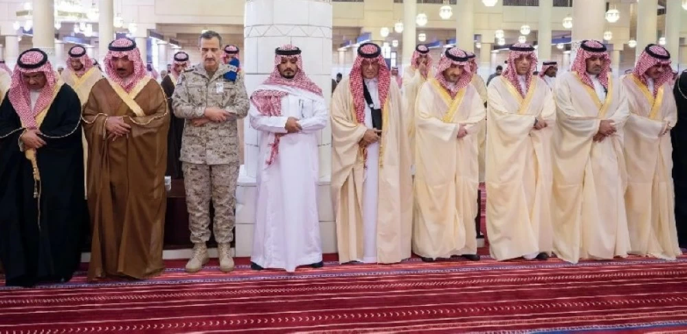 Alongside the Governor of Riyadh Region, the prayer was attended by Prince Turki bin Faisal bin Abdulaziz, Prince Saud bin Saad bin Abdulaziz, Prince Mansour bin Saud bin Abdulaziz, Prince Turki bin Abdullah bin Abdulrahman, Prince Khalid bin Musaad bin Abdulrahman, Prince Turki bin Mohammed bin Abdulaziz bin Turki, Prince Mohammed bin Mishari bin Abdulaziz, the advisor to the Custodian of the Two Holy Mosques, Prince Khalid bin Bandar bin Abdulaziz, Prince Muteb bin Abdullah bin Abdulaziz, Prince Dr. Saud bin Salman bin Mohammed Al Saud, Prince Mishari bin Saud bin Abdulaziz, Prince Fahd bin Mohammed bin Saud Al Kabir, Prince Talal bin Badr bin Saud, Prince Ahmed bin Abdullah bin Abdulrahman, Prince Mohammed bin Saad bin Khalid, Prince Alwaleed bin Badr bin Saud, Prince Khalid bin Saud bin Khalid bin Mohammed bin Abdulrahman, Prince Mohammed bin Saud bin Khalid bin Mohammed bin Abdulrahman, Prince Dr. Faisal bin Mohammed bin Saud bin Abdulaziz, the Governor of Al-Qassim Region, Prince Dr. Faisal bin Mishaal bin Saud, the advisor at the Royal Court, Prince Faisal bin Turki bin Abdulaziz, the Commander of the Royal Saudi Air Force, Prince Turki bin Bandar bin Abdulaziz, Prince Mohammed bin Bandar bin Abdulaziz, Prince Mohammed bin Khalid bin Abdullah bin Faisal bin Abdulaziz, Prince Nawaf bin Mohammed bin Abdullah, Prince Faisal bin Turki bin Nasser, Prince Bandar bin Saad bin Khalid, Prince Fahd bin Khalid bin Abdullah bin Mohammed, Prince Nawaf bin Faisal bin Fahd, Prince Mohammed bin Faisal bin Bandar, Prince Saad bin Abdullah bin Abdulaziz bin Musaad bin Jiluwi, the Governor of Al-Ahsa, Prince Saud bin Talal bin Badr bin Saud, Prince Fahd bin Khalid bin Sultan, Prince Abdullah bin Khalid bin Sultan, the Deputy Governor of Al-Jawf Region, Prince Muteb bin Mishaal bin Badr bin Saud bin Abdulaziz, and Prince Faisal bin Mohammed bin Faisal bin Bandar.