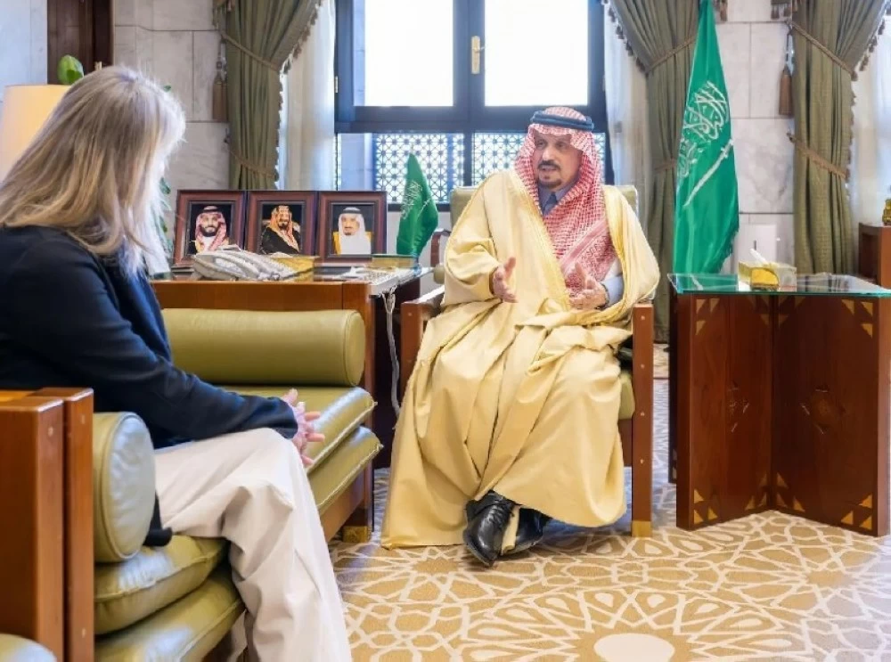 ورحب أمير منطقة الرياض، خلال الاستقبال، بالسفيرة متمنياً لها التوفيق في مهمات عملها الجديد.
