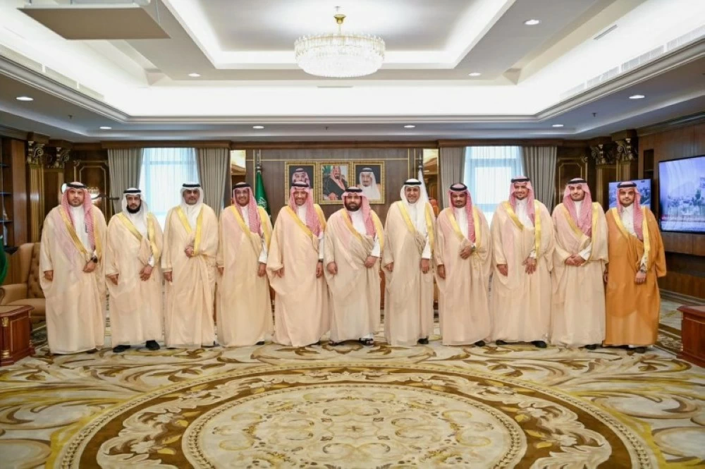 The Governor of Jazan Region, Prince Mohammed bin Abdulaziz bin Mohammed bin Abdulaziz, met today (Thursday) in his office at the emirate with the Minister of Industry and Mineral Resources, Bandar bin Ibrahim Al-Khorayef, the CEO of the Royal Commission for Jubail and Yanbu, Engineer Khalid Al-Salem, and a number of leaders from the industry and mineral resources sector.