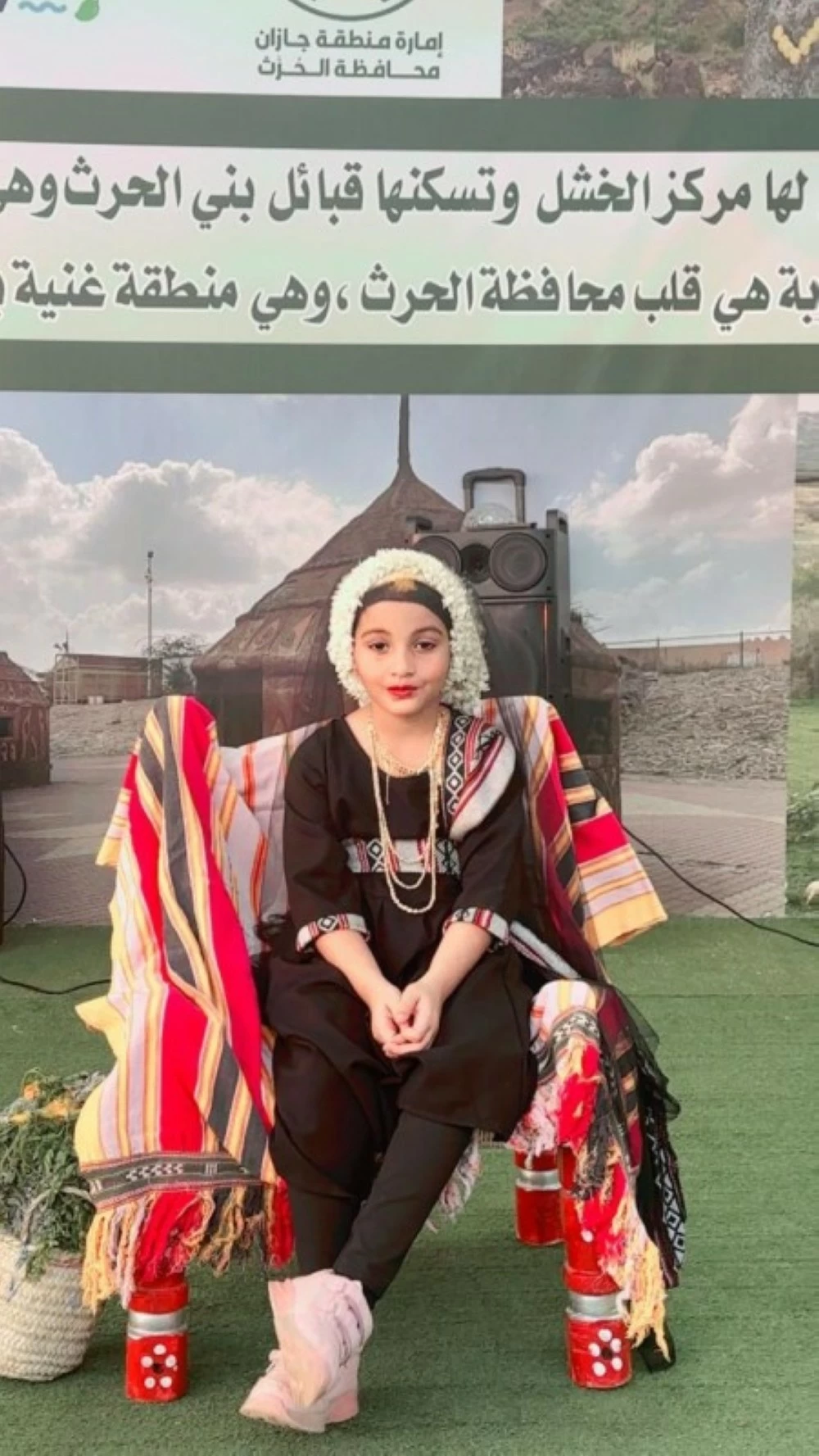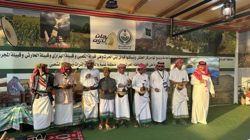 ركن محافظة الحرث في مهرجان جازان يجمع التراث بلون المعشى وصوت الناي