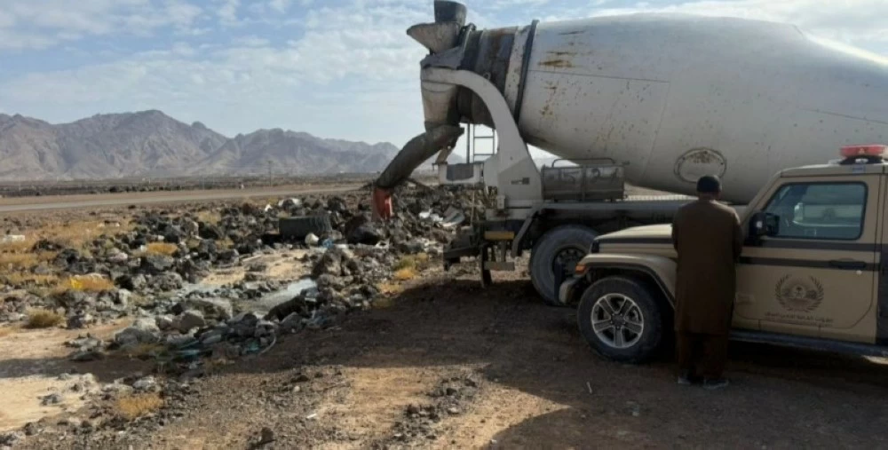 The Special Forces for Environmental Security apprehended a resident of Pakistani nationality for violating environmental regulations by polluting the environment and harming the soil by dumping concrete materials in the Medina area. Legal procedures were applied against him, and he was referred to the competent authorities.