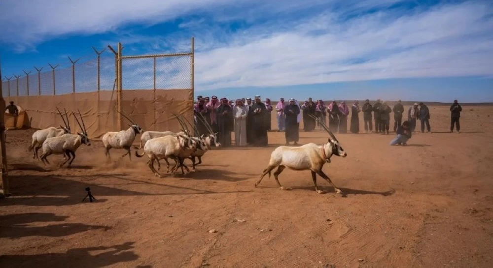 The release included 30 Arabian Oryx, 70 Reem Gazelles, and 40 Houbara Bustards, as part of efforts to return native species to their natural ecological ranges and build stable and sustainable wildlife populations capable of reproduction, contributing to the efficiency of ecosystems and enhancing their sustainability.
