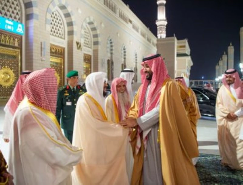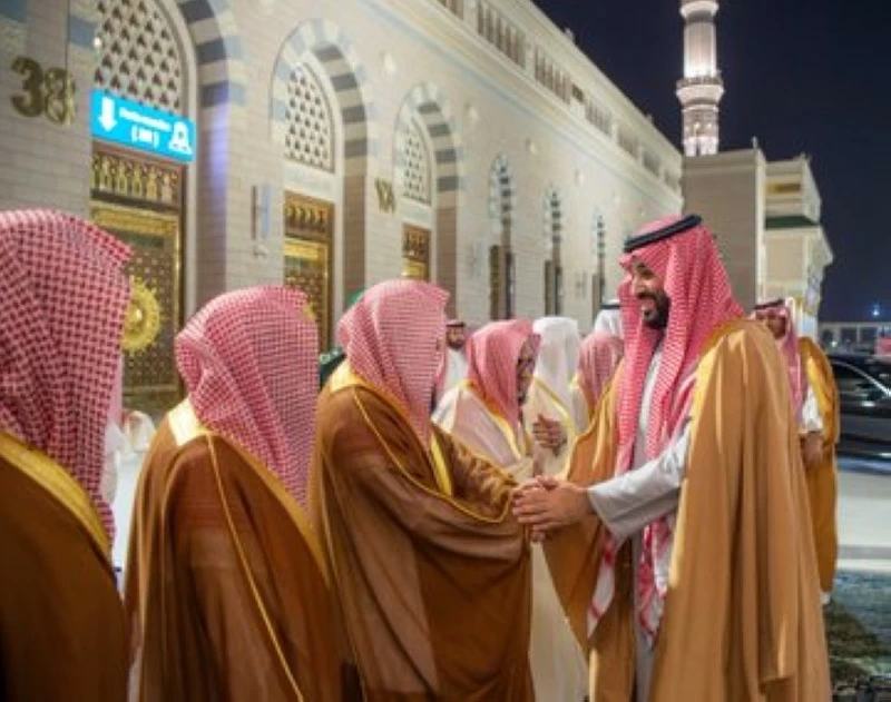 Crown Prince and Prime Minister Mohammed bin Salman bin Abdulaziz visited the Prophet's Mosque today, where he performed prayers in the Noble Rawdah and had the honor of greeting the Messenger of Allah, peace be upon him, and his two companions, may Allah be pleased with them.