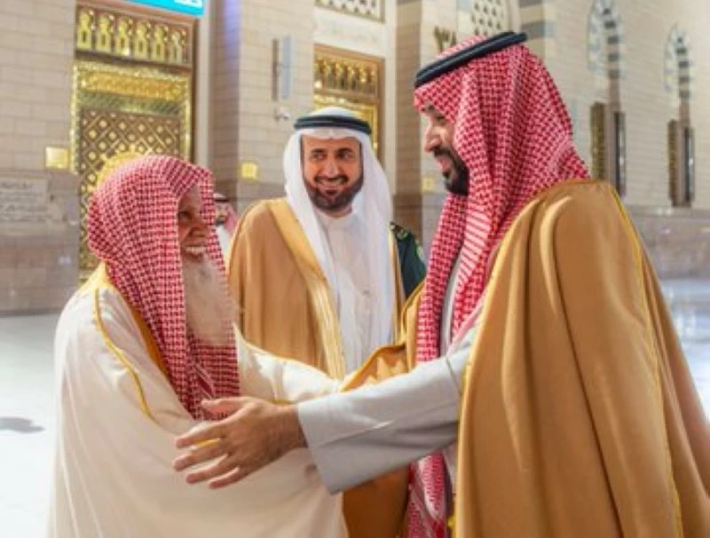Upon the Crown Prince's arrival at the Prophet's Mosque, he was received by the Head of Religious Affairs at the Grand Mosque and the Prophet's Mosque, Sheikh Dr. Abdulrahman bin Abdulaziz Al-Sudais, the Minister of Hajj and Umrah, Dr. Tawfiq bin Fawzan Al-Rabiah, and the imams and preachers of the Prophet's Mosque.