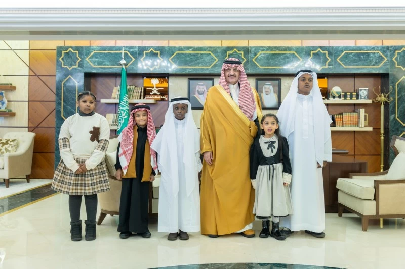 The Prince of the Eastern Province, Prince Saud bin Naif bin Abdulaziz, received a number of orphans today (Wednesday) in his office at the Emirate's Diwan, coinciding with Arab Orphan Day, in the presence of the Director General of the Ministry of Human Resources and Social Development branch in the Eastern Province, Mohammed bin Saud Al-Samari.