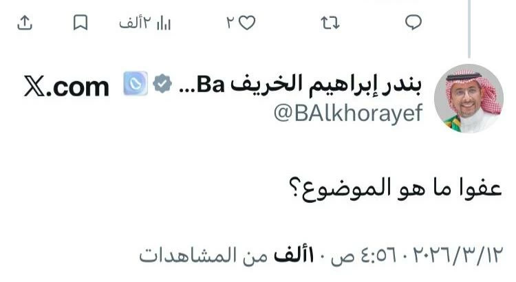 In a scene that reflects the increasing interaction between officials and citizens through digital platforms, the "X" platform witnessed notable engagement after one of the "followers" directed a direct question to the Minister of Industry and Mineral Resources, Bandar Al-Khorayef, regarding what he described as rights approved by the authority and signed by the relevant parties.