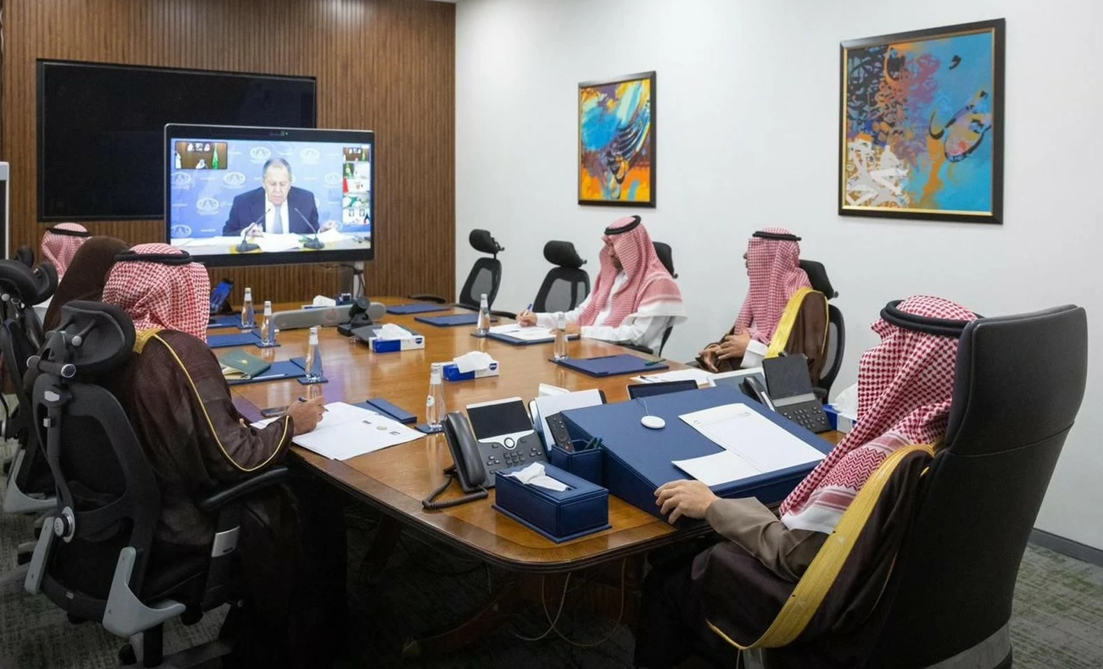 Foreign Minister Prince Faisal bin Farhan bin Abdullah participated today - via video conference - in the joint ministerial meeting between the Gulf Cooperation Council, the Russian Federation, and the Hashemite Kingdom of Jordan, to discuss and address the repercussions of Iranian attacks on the countries of the region.