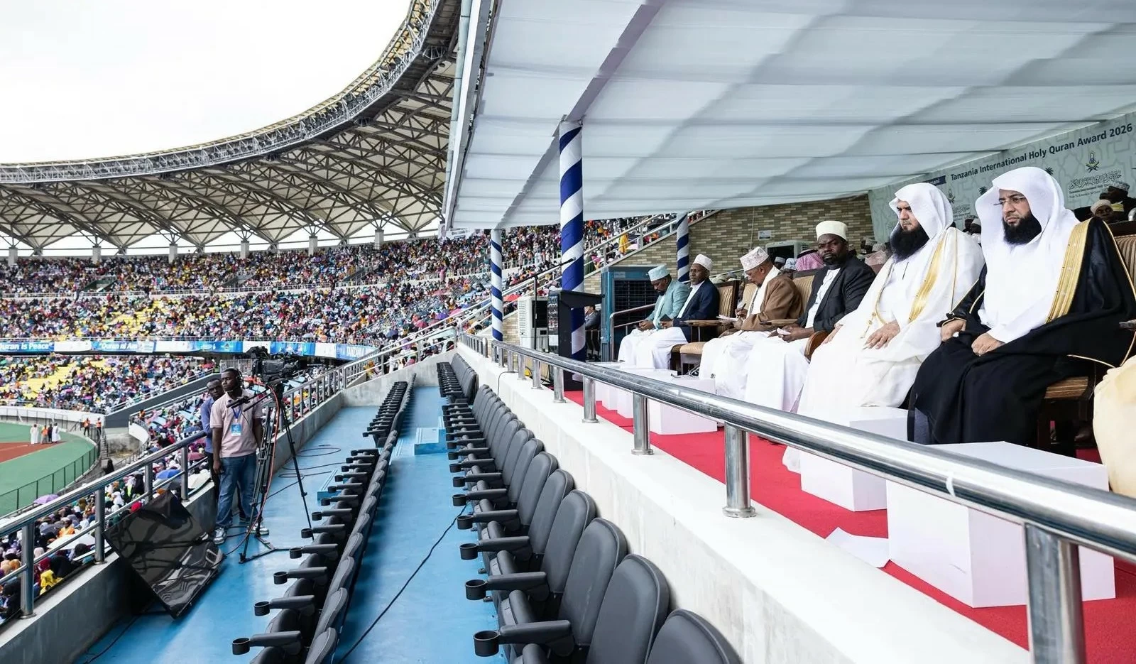 The 34th edition of the Tanzania International Quran Competition concluded today, which was sponsored and supported by the Kingdom of Saudi Arabia, represented by the Ministry of Islamic Affairs, Dawah, and Guidance. It was organized by the Supreme Council for Islamic Affairs in the United Republic of Tanzania, with the participation of (26) contestants representing (26) countries from around the world, at the national stadium in the capital, Dar es Salaam, amidst a large audience exceeding (60) thousand people.