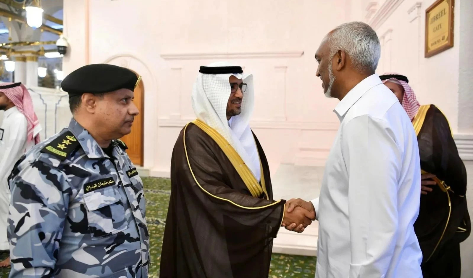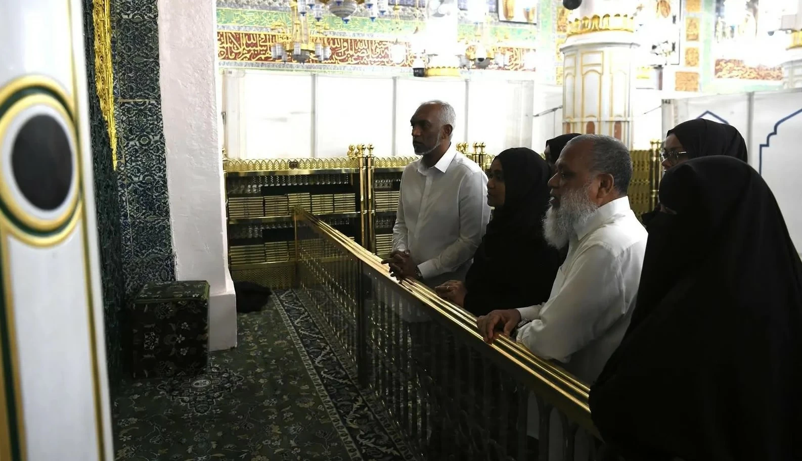 The President of the Maldives, Dr. Mohamed Muiz, and his accompanying delegation visited the Prophet's Mosque today, where he performed prayers and had the honor of greeting the Prophet Muhammad - peace be upon him - and his companions - may Allah be pleased with them.